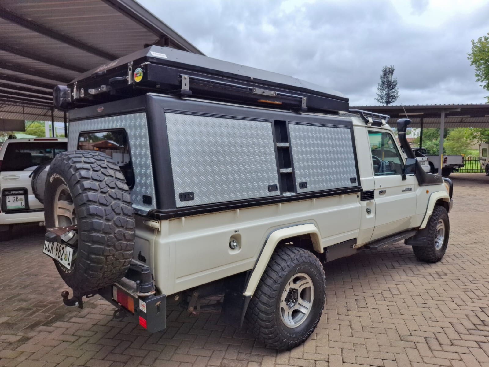 - TJM replacement bumper met winch en spotlights- dual battery system - nuwe 80ah deep cycle battery.- Baylies roof rack- Safari snorkel- Bushtech canopy with kitchen (has counter top), gunrack and ammo box mounting system- storage cargo net- +- 80l water tank- foldable table with secure storage system against roof- Jerry can holder- gass bottle mounting system - will include gass bottle- gobi-x fridge slide.- 2 hella power points in tray- brad Harrison connection in tray for fridge- 270 swing arm alucab awning- alucab rooftop tent- outback replacement tow bar with swing arm carrier for spare wheel- safe underneath tub- flex fridge inside between seats- dash cover- arm rests- floor mats- gear box cover- recently serviced near complete service history- new radio with hands free- storage system mounted behind seats